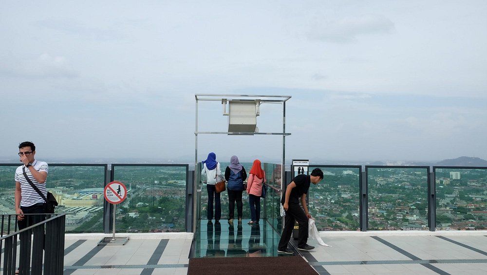 The Shore Sky Tower in Melaka is the city’s tallest man-made structure at 163 meters (43 stories), offering 360° panoramic views of Melaka City and the Straits of Melaka. Located at The Shore Shopping Gallery, it features an open-air observation deck and a glass-floored sky deck for thrill-seekers.